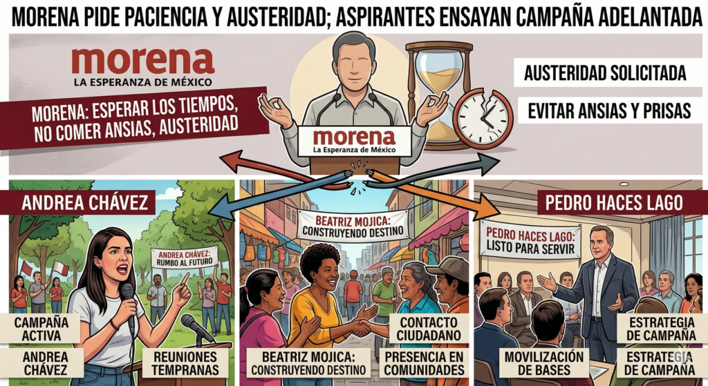 Morena pide austeridad y no comer ansias; algunos aspirantes ensayan campaña